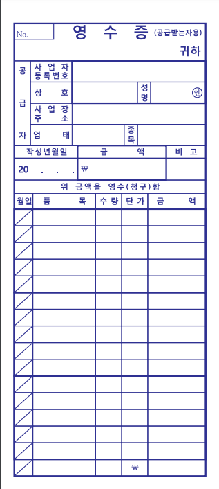 아래 간이영수증 양식을 다운로드하여 사용하시기 바랍니다.