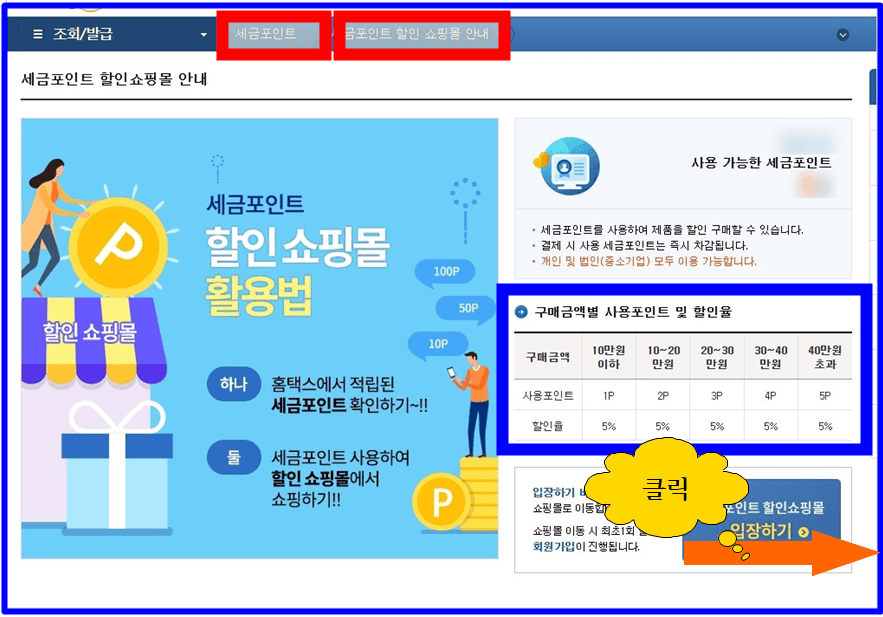 국세청 세금포인트 밍 쇼핑몰 안내 💦