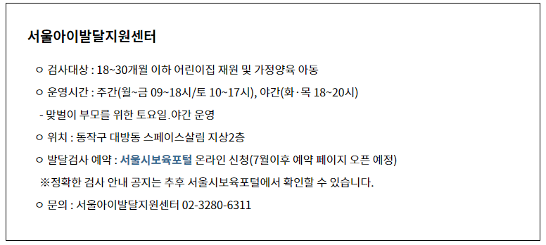 문의: 서울아이발달지원센처 (전화: 02-3280-6311)